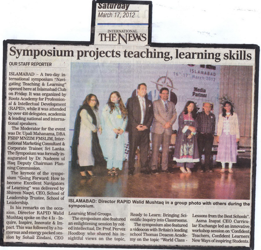 A two day international Symposium "Navigating Teaching & Learning" opened here in Islamabad club today. The Symposium was organized by Roots Academy for Professional & Intel...