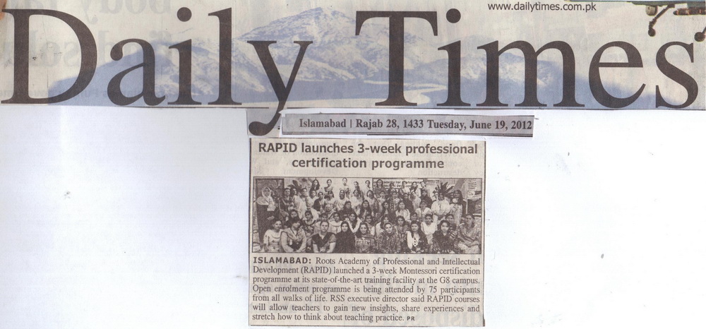 Roots Academy of Professional and Intellectual Development RAPID launched a 3 weeks Montessori Certification Program at its state of the art training facility at G8 campus. This open enrollme...